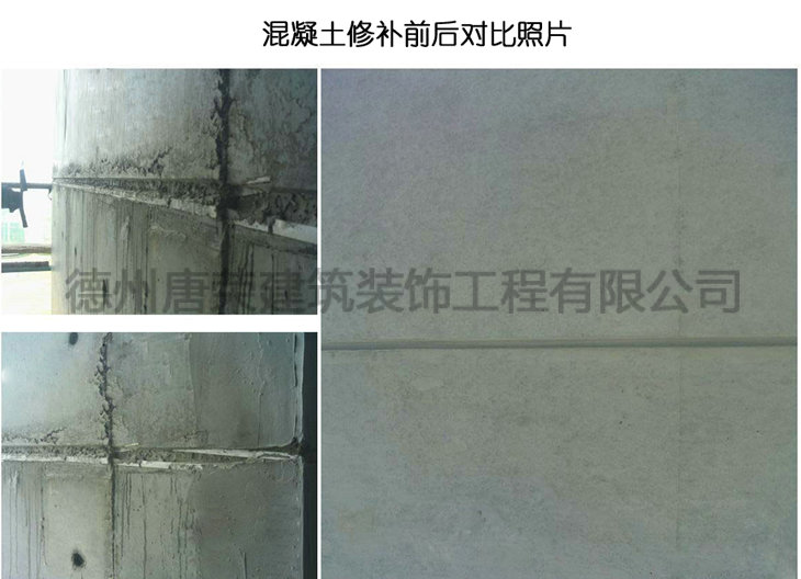 混凝土的缺陷形式很多,比如蜂窩、露筋、麻面等,這些都是小的缺陷,修補(bǔ)及修飾對(duì)我公司來說是不成問題,修飾部分的混凝土表面與大面沒有大的色差。主要的缺陷是漲模。這種缺陷的修飾需要大量的人工及材料,還需要技術(shù)水平高的工人來操作。我公司專業(yè)修補(bǔ)混凝土的蜂窩、麻面、裂縫、露筋、露震、錯(cuò)臺(tái)、局部破損等混凝土缺陷。